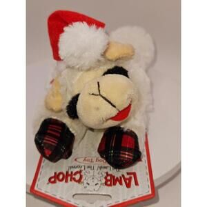 Lamb Chop plush dog toy. Original,BNWT, Approx. 8” long, has a squeaker, holiday edition with plaid print on the front feet and a Santa hat. Intended for pet use only, recommended small breed.