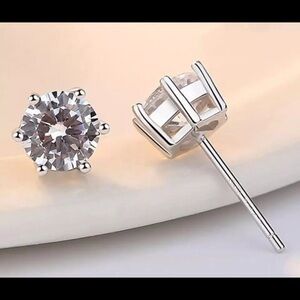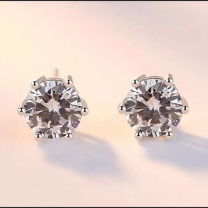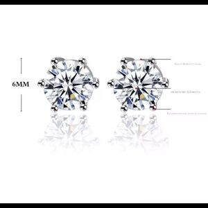 Stunning 925 Sterling Silver Earrings Classic Six Claw Zircon Stud Earrings