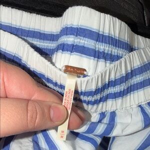 Free People High Waist Striped Shorts - Blue and White
