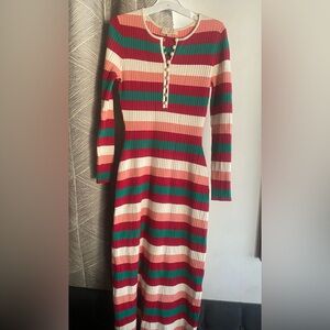 La Maille Sezane Striped Long Dress Wool Blend Multicolored Sz Small
