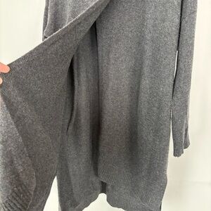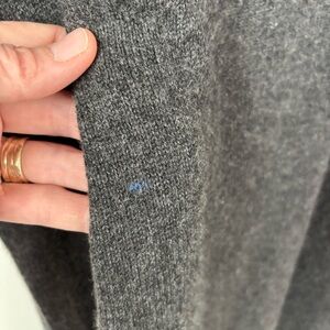 Dark gray, vowel neck, long sleeve, tiny blue spot but seems to be the thread, new without tags!