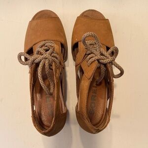 Sorel Tan Open-Toe Lace-Up wedge sandals