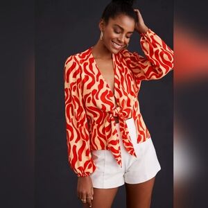 Faithfull The Brand Sarin Top Front Tie Print Size USA 8