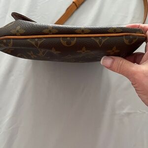 This bag is authentic. It has a serial number. It is very hard to read. Bag is in excellent condition with the exception of the pen marks. I cannot read the serial number.