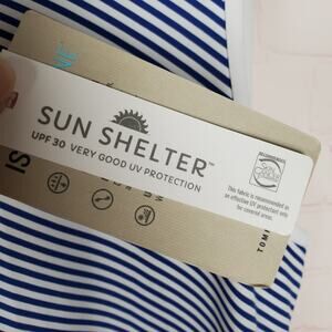 NEW Tommy Bahama Aubrey Island Zone Sun Shelter Resort Stripe Tank Dress XS Blue White UPF 30+ Pockets Stretch