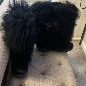 BearPaw Black Furry Winter Boots