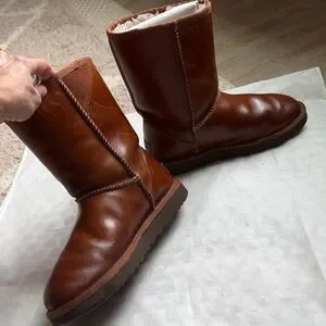 🌰 UGG 🌰 Women's Classic Short Water-resistant Leather •Chestnut • size 8