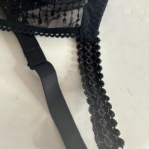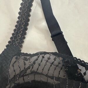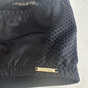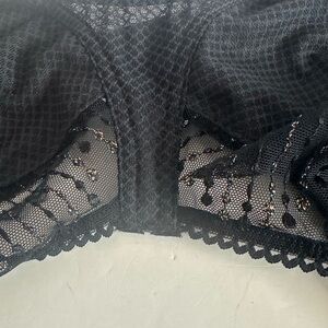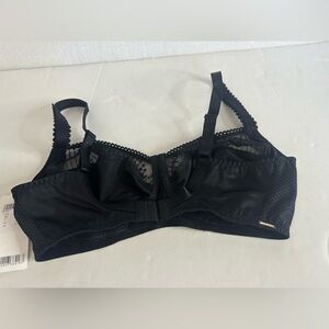 Chantelle black sheer underwire bra with delicate embroidered mesh panels. Comfortable supportive fit with adjustable straps and feminine scalloped trim. Elegant black design ideal for everyday wear or special occasions.