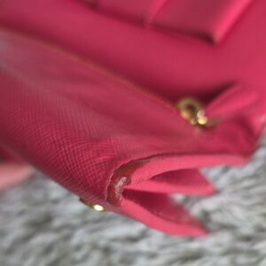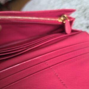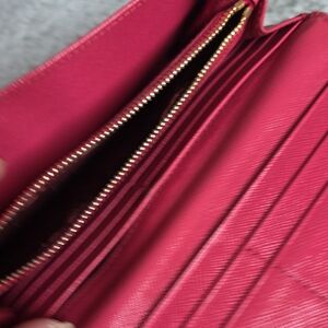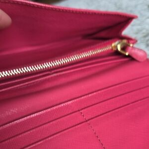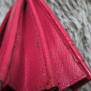 Normal sign of wear and scuffed in some parts of the wallet. Sign of wear on corner edges as we'll as on both sides middle part .