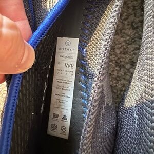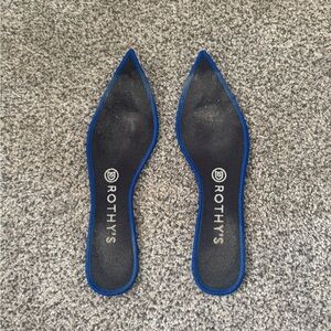 Chic Rothy's flats in blue and gray. Versatile and eco-friendly design.