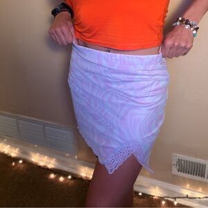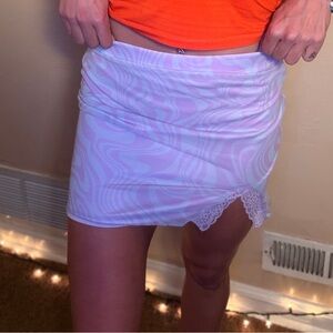 Forever 21 Lavender Swirl Mini Skirt with Lace Accent and Slit