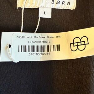 Stunning Baltic Born Xander sequin mini dress in an eye catching green and blue iridescent sequin fabric that shifts colors in the light. Perfect for holiday parties, New Years Eve, weddings, or special events.