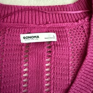 Sonoma short sleeve crochet cardigan in vibrant magenta color with a button closure design. Lightweight, breathable, and perfect for layering in spring and summer