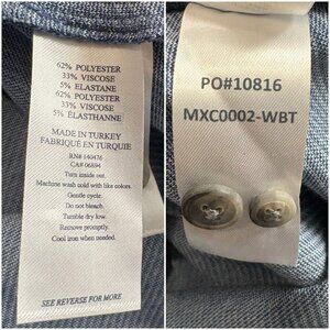 Material: 62% Polyester, 33% Viscose, 5% Spandex, Faux Corozo Buttons