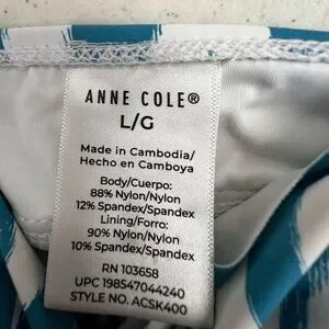 ANNE COLE TEAL & WHITE SIZE LARGE PATTERNED TANKINI PADDED WITH UNDERWIRES. NWOT