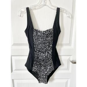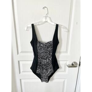 Calvin Klein Square Neck Ruched One Piece Swimsuit Black Size 4 New