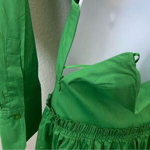 Jason Wu Pretty Green Cutout Waist Long Sleeve Short Dress, Size M