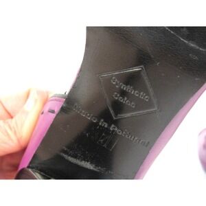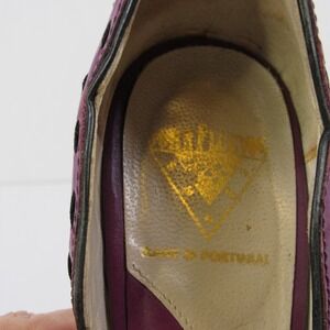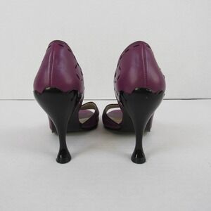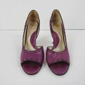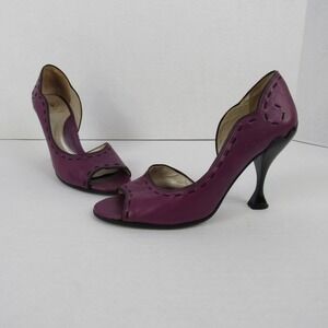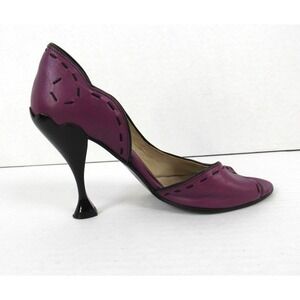 John Fluevog Hepburn Purple Leather Black Stitching Pumps Heels Open Toe