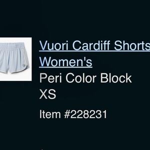 Vuori Cardiff Shorts Peri Color Block. XS. Like New
