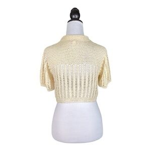 Vintage Betsey Johnson Ivory Crochet Knit Short Sleeve Cropped Cardigan Size L