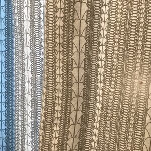 2 Curtains panels. West Elm Echo Print . Pre-owned. One of the panels it has a small stain. Look at closely photos.Good condition.Due to weight restrictions, I can’t bundle many Home listings, but, I will try whenever possible.