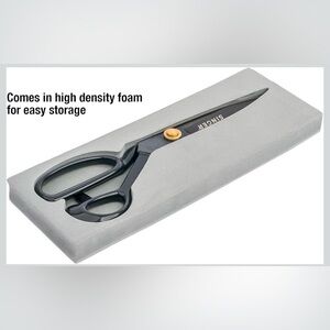 Sturdy 10” tailor scissors easily cut dressmaking fabrics and heavy cloth