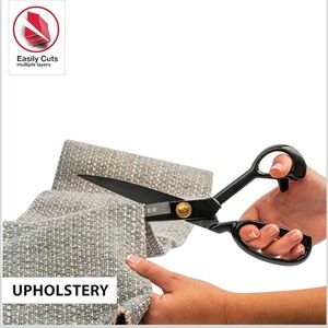 Heavy duty shears with blackened blades allow dressmakers, tailors, and sewists to precisely cut multiple fabric layers at once