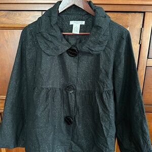 Vertigo Paris Black Linen Cotton Shimmer Top Cardigan Fancy Collar Large Snap Buttons Size S NWOT