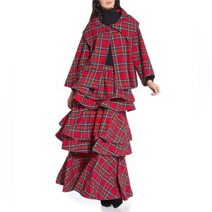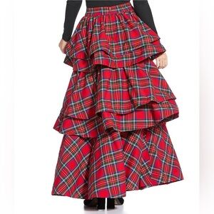 NWT Buru Teagan Shimmer Tiered Ruffle Full Length Side Seam Pocket A-Line Skirt