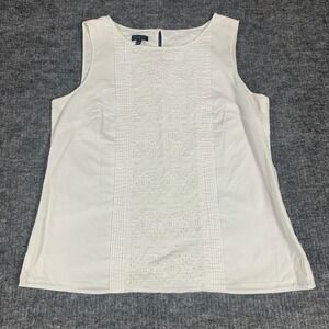 Talbots Blouse Womens 8 White Cotton Sleeveless Eyelet Embroidered Lined Top