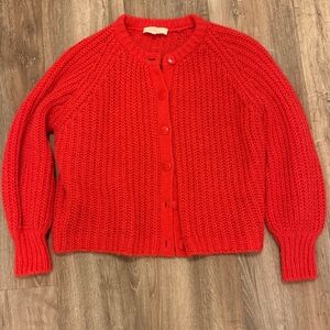 Chic and cozy red cardigan. Features button-up front. Ideal for layering. Worn once!