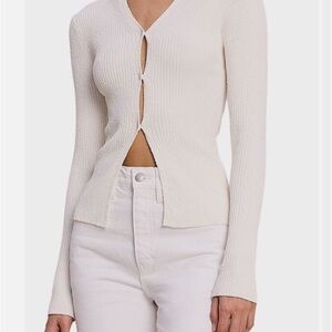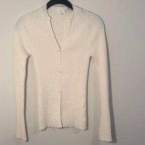 A.L.C. Cream Ribbed V-Neck Button Cardigan
