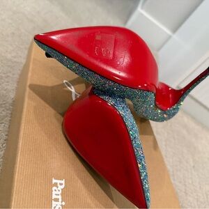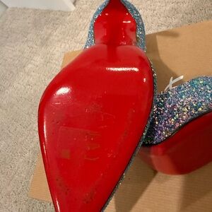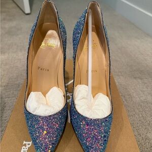 Stunning and rare Christian Louboutin So Kate 120 pumps in the coveted Dragonfly glitter colorway. These heels are discontinued and hard to find, especially in this condition.