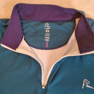 Stylish Rhoback green and Navy houndstooth 1/4 zip pullover. Men's size XL. Like new condition, no signs of any wear. Poor lighting in the images, it's true Navy on collar and pattern.