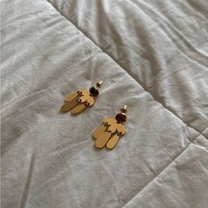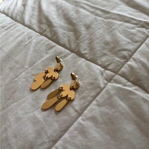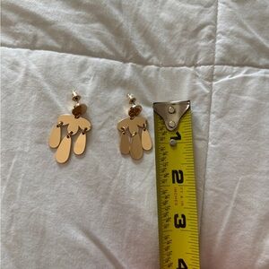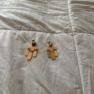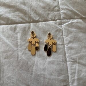 Cute gold tone dangle earrings with a chandelier / drop design. Brand is unknown, but they look very similar to Lauren Conrad style earrings. These are gold plated / gold tone, not real gold.