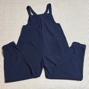 Halara navy Jogger jumpsuit with adjustable shoulder straps for a custom fit. Size XS. 25” Inseam. Pit to pit 16”. Like New Condition.