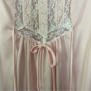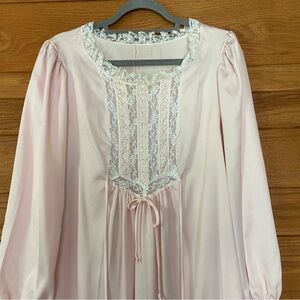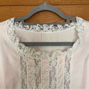Vintage 80s pink lace trim ruffle long sleeve nightgown