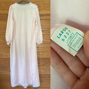 Vintage 70s 80s pink lace trim ruffle long sleeve nightgown. Size large.