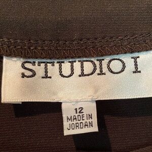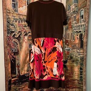 Studio I Vibrant Brown and Pink Dress with Removable Cardigan.