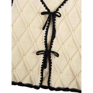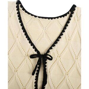 Women's Knit Sweater Vest Acrylic Small V Neck Contrast Binding Tie Front