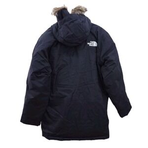 The North Face Bedford Down Parka Coat Size XL. New with tags; retail $400. Black in color. Features hood with brown faux fur and full zip with snap buttons. 75% down, 25% feather fill.