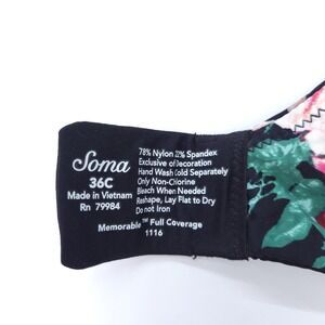 Soma Memorable Full Coverage Bra Size 36C. In excellent condition. Black with multicolor floral print. Features underwire cups, adjustable dual straps, and 2 hook/eye back closure.