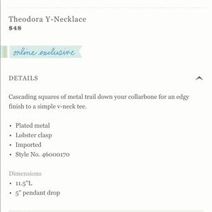 NWT Anthropologie Y Necklace