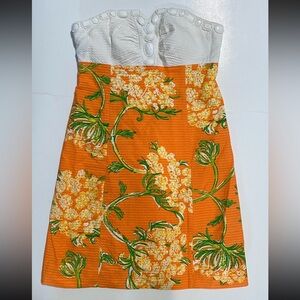 Lilly Pulitzer White Strapless Dress with Orange Floral Skirt
