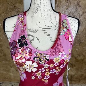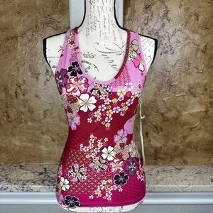 NWT Johnny Was Yama Bee Active Mesh Tank Size XS Pink Maroon Floral Athletic NEW