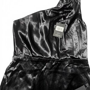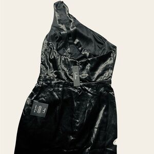 Lulu's Black Satin One-Shoulder Dress with Crisscross Back NWT