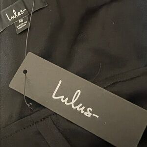 Beautiful and elegant black satin dress by Lulus. Features a stunning crisscross back design. Perfect for any special occasion.