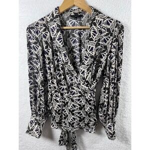 JNY Jones New York Women's 1X Boho Peasant Blouse Purple Paisley Tassel