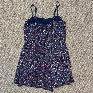 Francesca’s Blue Rain Floral Spaghetti Strap Floral Romper, size small