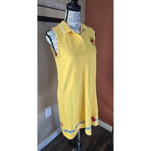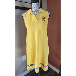 Vtg Y2K Disney World Pooh Yellow Sleeveless Polo Dress Girls XL/Womens SM